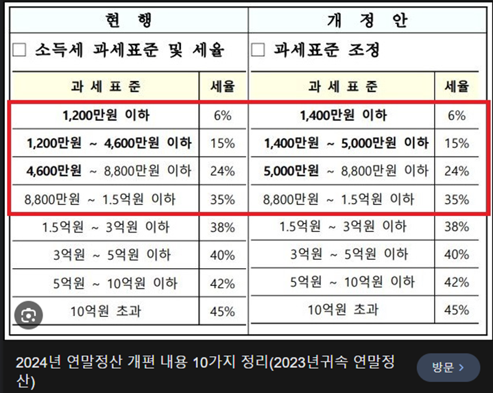 - 3억원 초과: 35% – 최고세율로, 기존 45% 대비 10%포인트 낮아 '초부자 감세' 논란이 있지만, 투자 촉진 측면에서 긍정적.